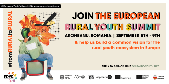 The European Rural Youth Summit will take place between 5th and 9th of September 2023, in Aroneanu (near Iași), Romania.Organized under the umbrella of the European Youth Village Program, the European Rural Youth Summit aims to strategically develop the rural youth ecosystem in Europe by bringing together young people from rural areas across Europe, youth…