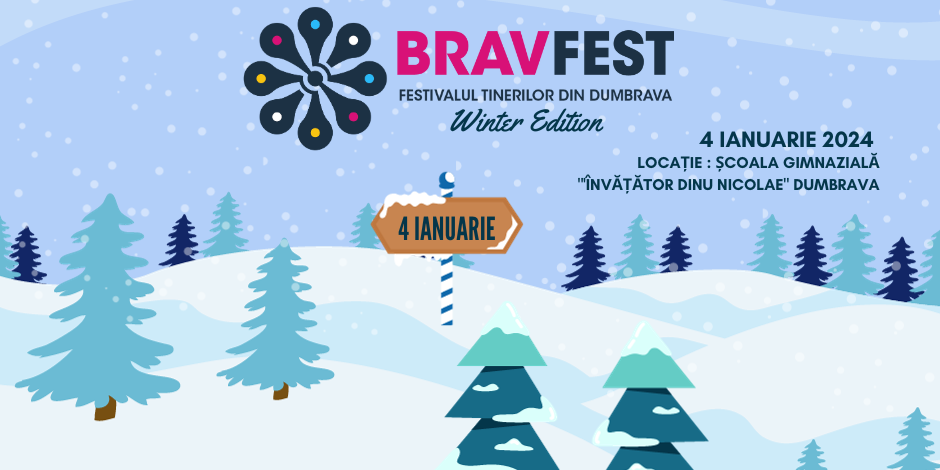 Ediția de iarnă a festivalului de tineret DumBRAVA Youth Fest se va desfășura pe 4 ianuarie 2024, începând cu ora 13:30, în comuna Dumbrava (Prahova), la Școala Gimnazială „Învățător Dinu Nicolae”. După succesul activităților din vară, tinerii din Dumbrava și din alte comune sunt invitați să participe la noi activități dedicate lor, pe parcursul întregii zile.