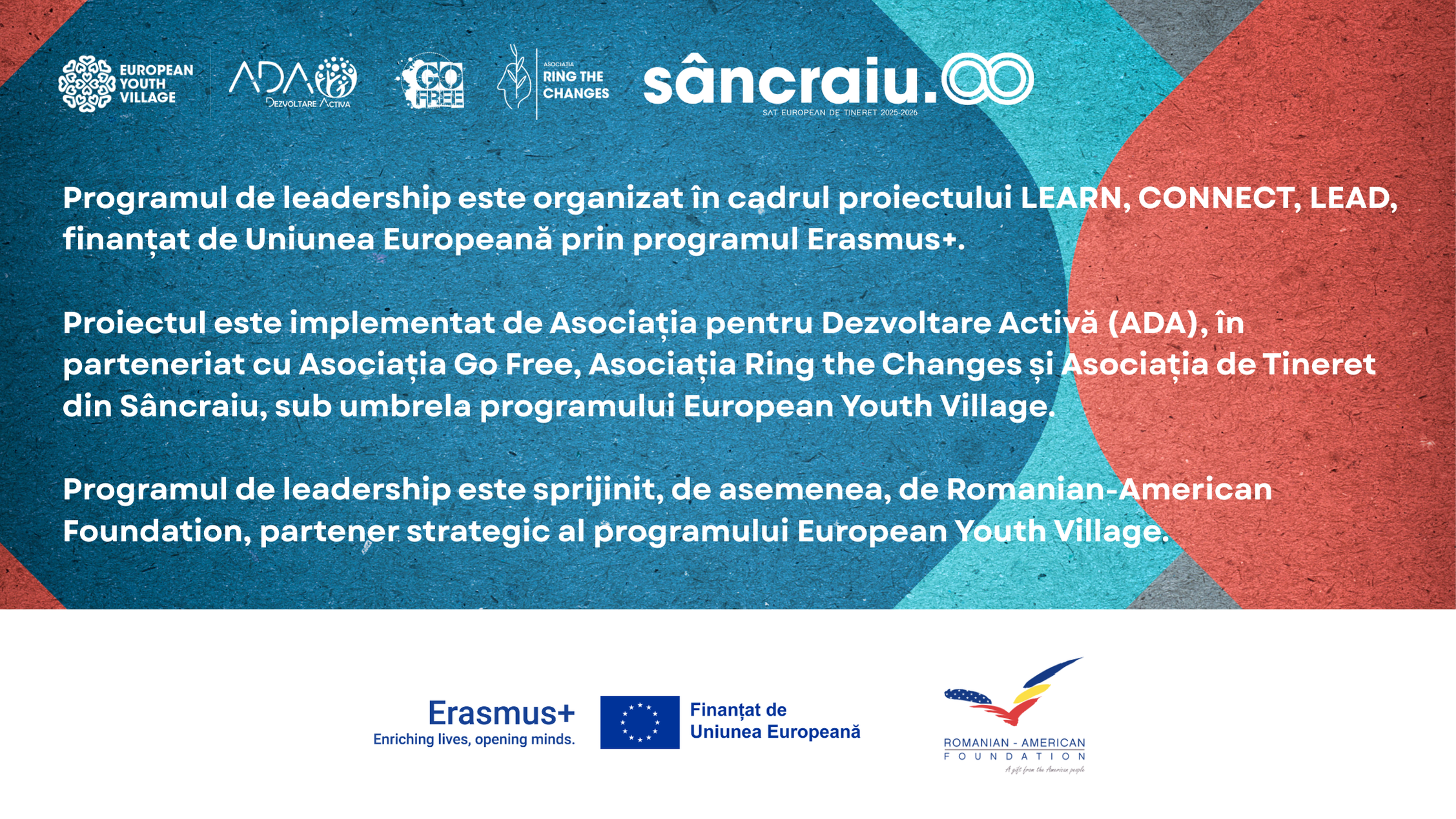 Mobilitatea LEAD (Sâncraiu, județul Cluj; 19-22 noiembrie 2026) aduce împreună toți tinerii implicați în program și creează un spațiu în care rezultatele muncii lor sunt prezentate, discutate și validate. Pe parcursul întâlnirii, grupurile își prezintă inițiativele și experiențele din comunitățile lor, discută despre provocările întâlnite și despre ce au învățat din acest proces.