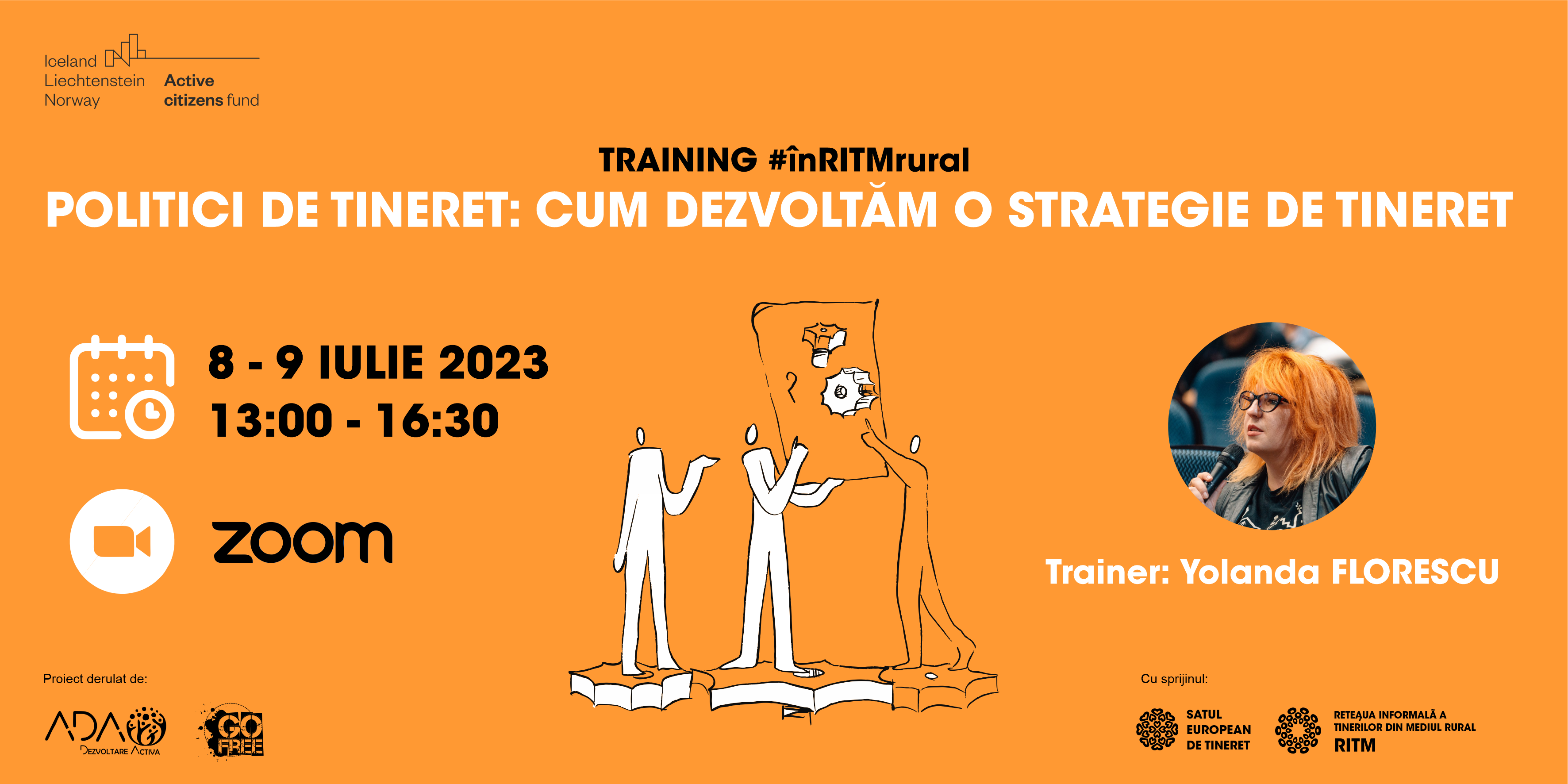 Pentru a veni în sprijinul acestei nevoi și pentru a ne asigura că tinerii din mediul vor fi prezenți pe tot parcursul ciclului de viață al viitoarelor strategii de tineret, Guvernanța programului European Youth Village (Asociația pentru Dezvoltare Activă și Go Free – Asociația pentru Sprijinirea Societății Civile) organizează trainingul #înRITMrural ”Politici de tineret – Cum dezvoltăm o strategie de tineret în mediul rural”, facilitat de Yolanda Florescu, specialist în activitatea de lobby în cadrul Fundației Naționale pentru Tineret.